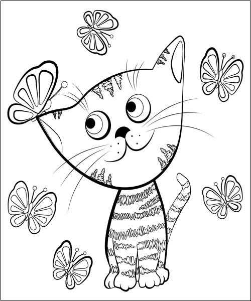 This Kitten Coloring page blends the innocence of kittens with nature’s beauty, featuring a kitten in whimsical settings with butterflies fluttering around it. It is a delightful combination that sparks creativity and joy in kids and adults. You can combine a bright and soft palette of colours for the butterflies to bring the scene to life beautifully. You can go with brush pens or poster colours if you are an adult; crayons are the perfect tools for younger kids for mess-free work.