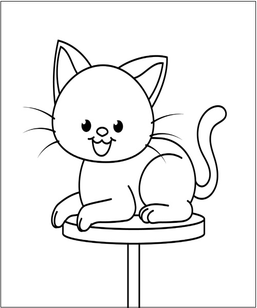 Suppose you are looking for Kitten Coloring Pages for Preschoolers. In that case, this one designed to introduce young children to the world of coloring and creativity can be an ideal choice. This page features an outline of an adorable cat perched on a stand, which can be suitable for little ones who are beginning to explore art. Make sure to use primary colours kids can recognize easily. Which can further help develop fine motor skills and hand-eye coordination.