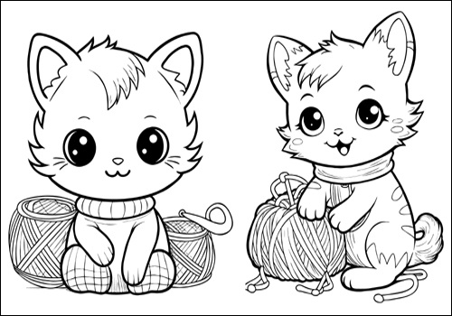 You can capture kittens’ playful and endearing nature on this colouring page, where the Kitten plays with balls of Yarn. It is an excellent way for kids of all ages and adults to enjoy colouring while celebrating the irresistible antics of kittens. This page lets you bring these adorable kittens to life with your artistic touch. Whether you prefer realistic colors or imaginative and vibrant shades.