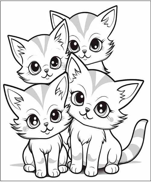 Kawaii art is known for displaying big and adorable eyes on creatures, whether living or a thing. This Kitten Colouring Page is a delightful fusion of cuteness and creativity where the feline animals have big, adorable eyes and sweet expressions. This page offers a relaxing and enjoyable colouring experience for kids and adults who adore everything cute. It is a great way to unwind and express love for irresistibly cute things.