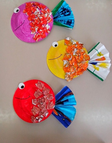 Paper plates are the common thing which is mainly used in all kinds of kids’ crafts. Here, in Fish Crafts also, these paper plates are made used to make the body of the fish. It is then coloured with different colours and is attached with extra fins, which are separately made of colourful chart papers. Other details, such as the eyes and mouth, are attached, as shown in the image. These are the perfect Fish Craft ideas for children.