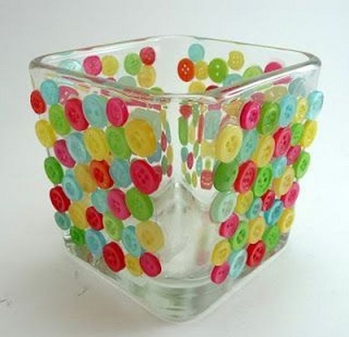 Well, if you have some extra buttons, then you can surely do this type of button art and craft. Just stick some buttons on the glass, and you have a new variety of glass in your kitchen. These can also be a creative gift to give.